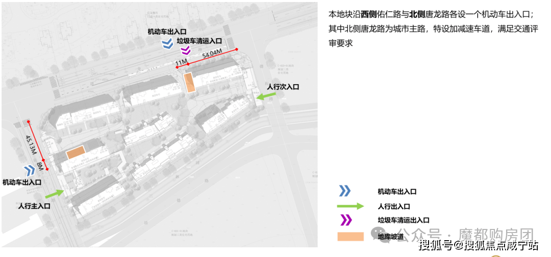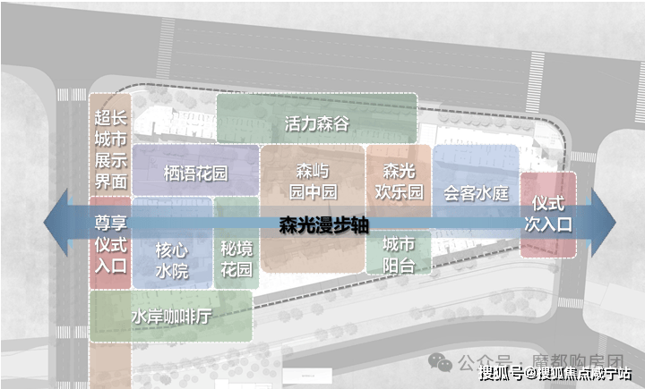 小区采用全人车分流设计■-,主入口位于西侧佑仁路,通行便捷有序。大门庄重大气△☆◆,门头通过横向感拉槽与奢石景墙巧妙结合,搭配序列感植物,营造秩序感与昭示性○□。主入口三进式礼序,仪式感与功能性兼备■。一进为酒店式落客和车马厅▪◆□,以礼遇之姿迎接业主归家◆•★,大堂尽显尊崇■◁;二进静谧水院、会客廊架○、下沉庭院相互呼应★,形成意境洄游空间;三进风雨连廊相伴,带来伴水归家惬意体验▷=。次入口在东侧,方便出行。