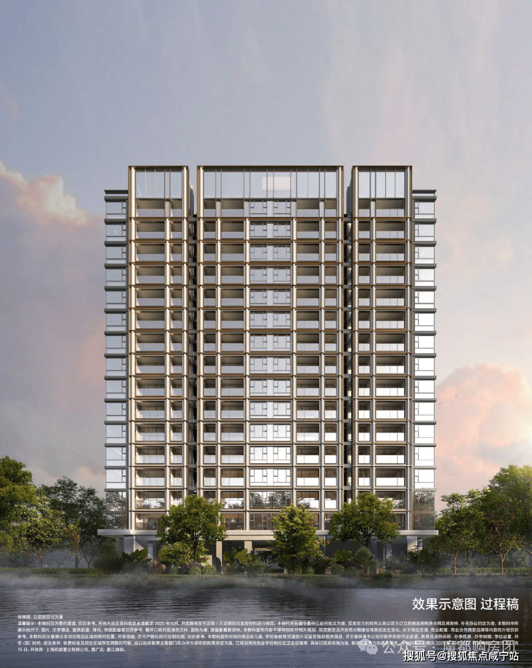 材质:局部温润石材、仿铜铝板■▪、仿石铝板及局部仿石涂料,竖向铝板提升品质感