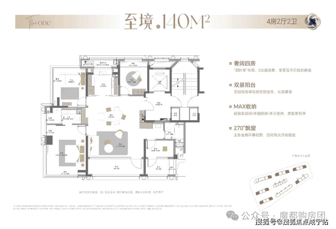 整体布局与140㎡户型基本一致,双南向阳台、独享电梯厅、6飘窗等户型拓展面积超过18㎡!