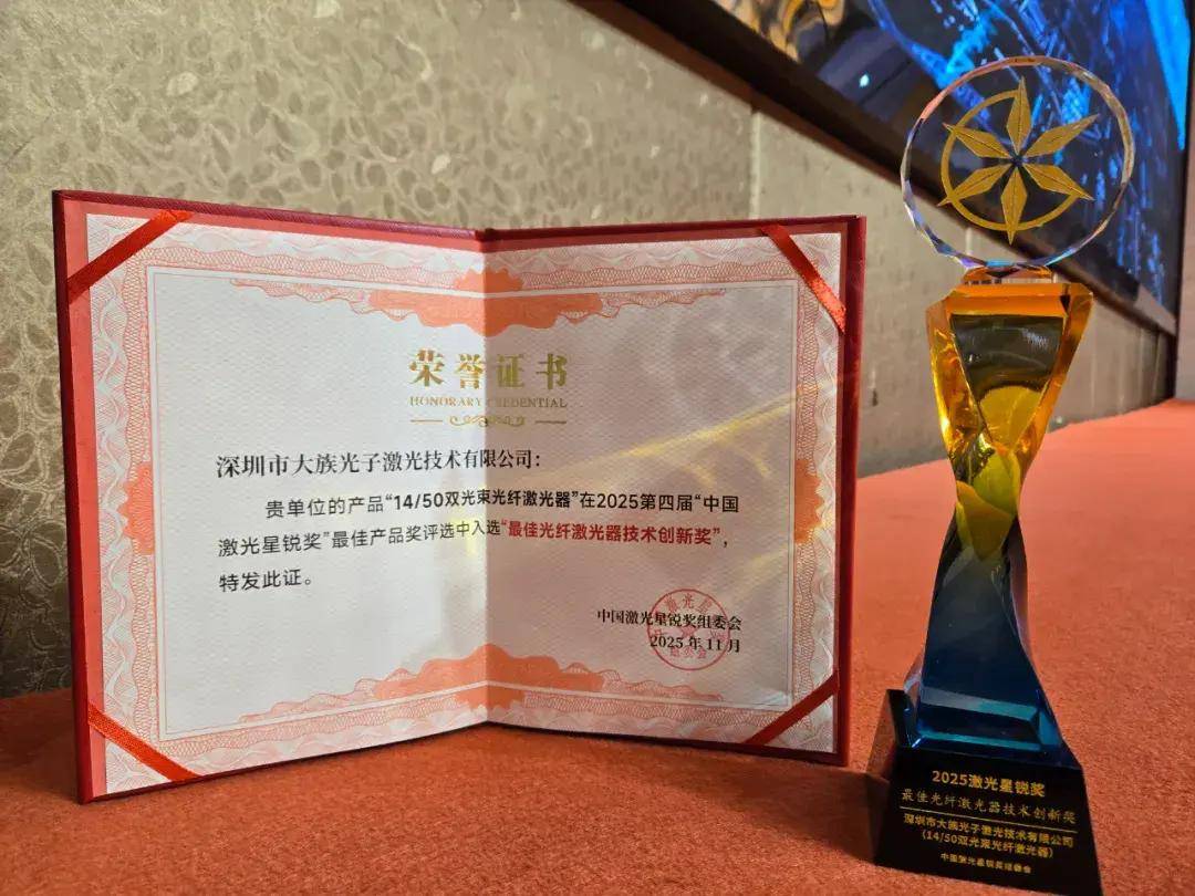 11月28日-,由湖北省光学学会、激光之家联合相关单位承办的◇“SRA2025第四届中国激光星锐峰会暨激光星锐奖颁奖典礼”在武汉光谷隆重举行。经过行业用户网络投票和特邀专家数月的多维度评选,大族光子核心产品“天工系列-14/50双光束光纤激光器◁◇”荣获“最佳光纤激光器技术创新奖■”○★,为企业创新之路再添浓墨重彩的一笔!