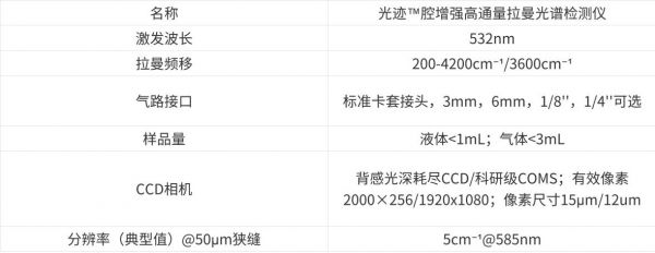其核心产品“光迹腔增强高通量拉曼光谱检测仪•-•”关键性能指标亮眼: