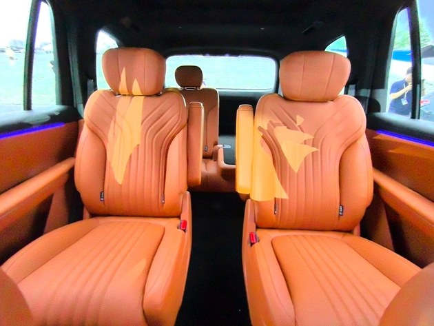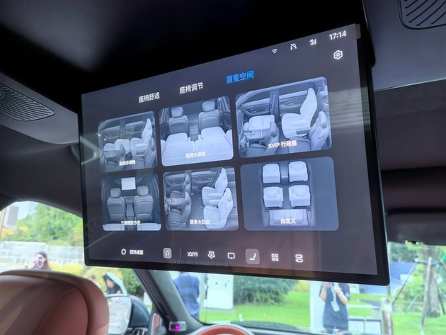 新车采用2+2+2的座椅布局-…•,车内垂直高度1▷.3米,有效长度3.7米,云感座椅采用类似蚌型的设计,并配备腰部支撑以及侧翼支撑,同时还有加热功能。副驾支持放倒,还有腿托,舒适性极佳。