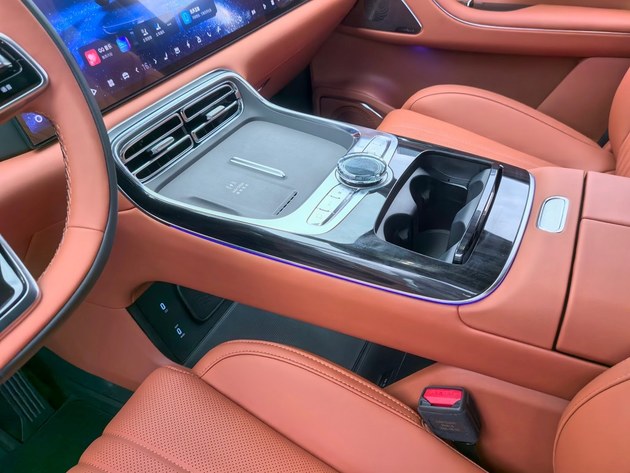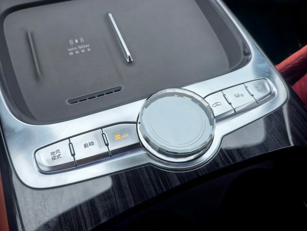 同时,中岛区域采用双层设计,空调出风口和手机无线充电板相接。无线充电板后方还配有少量物理按键及旋钮,美观的同时还很好用▲…。