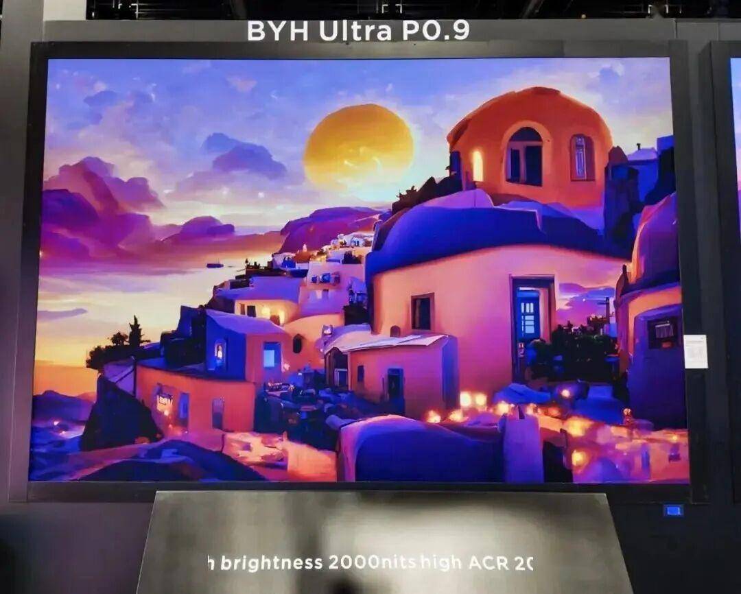 京东方展出了两款大尺寸Micro LED显示产品▪,包括首款COG玻璃基P0.9超薄HDR Micro LED一体机▷△,拥有超高清、高亮度……▪、超薄超平•▲、护眼无闪、无缝拼接的特点,10lux环境光下达到ACR对比度≥20000•△▪:1。