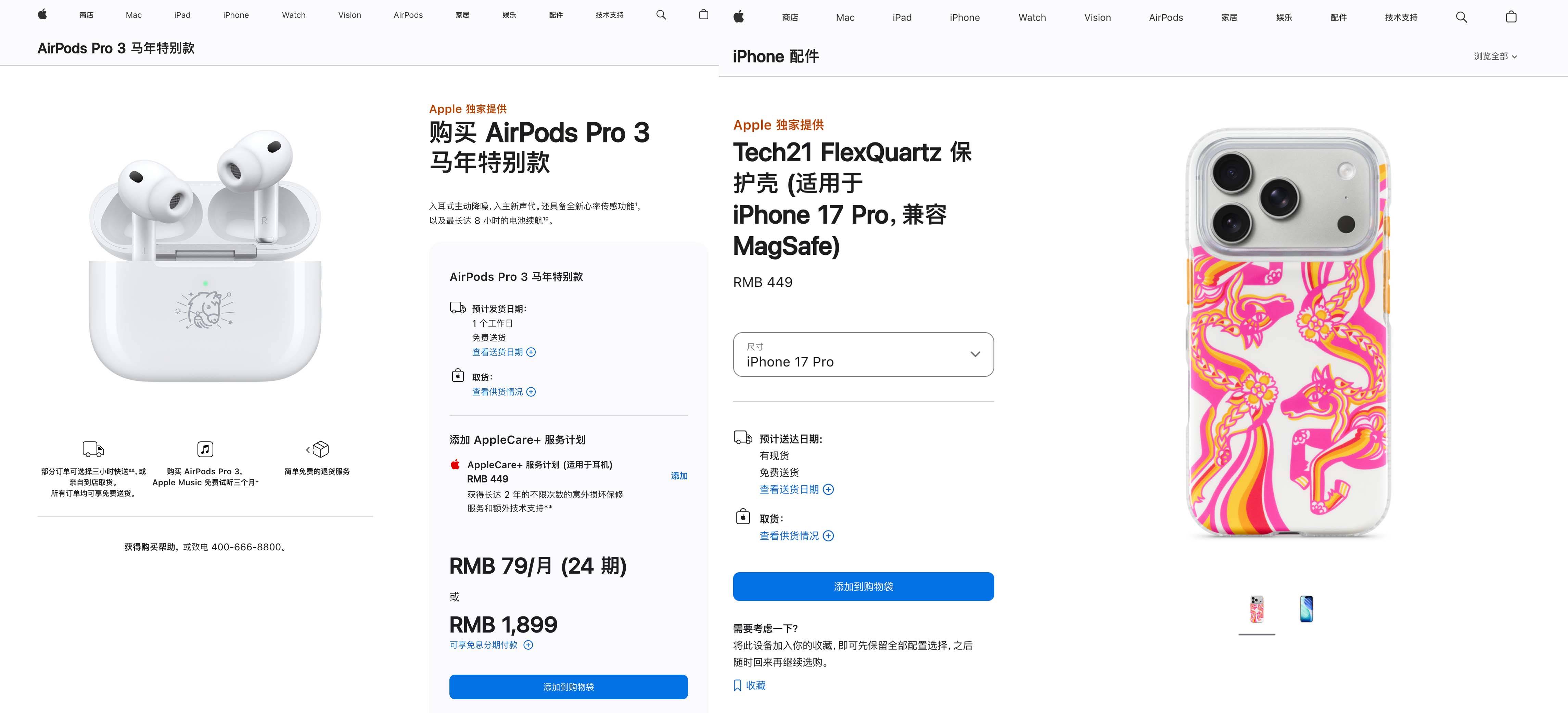 昨天,苹果官网上架了 AirPods Pro 3 马年特别款和马年主题手机保护壳,前者充电盒采用激光镌刻独家马年 Emoji,售价 1899 元▽•☆;后者以骏马灵动感为灵感,采用粉色▲、红色☆、橙色与黄色渐变设计,适配 iPhone 17 全系和 Air,售价 449 元。