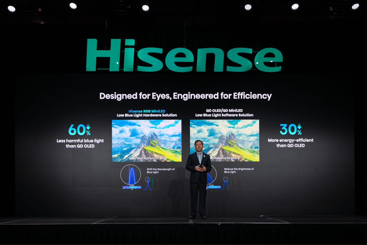 为了打破传统Mini LED和OLED的色彩、能耗及视觉舒适局限,进一步提升大屏时代显示设备的用户体验☆●◇,海信一年前开创并全球最先量产了RGB-Mini LED电视…,这一创新技术随着全球TOP5电视品牌悉数布局,迅速成为全球高端电视的趋势热词。…“RGB与Mini LED的结合,是一场颠覆性的变革。”海信视像科技总裁李炜在今年CES的展前发布会上表示,为了还原那份无限趋近于肉眼所见的极致真实,全新一代RGB-Mini LED技术带来了三大进化…。