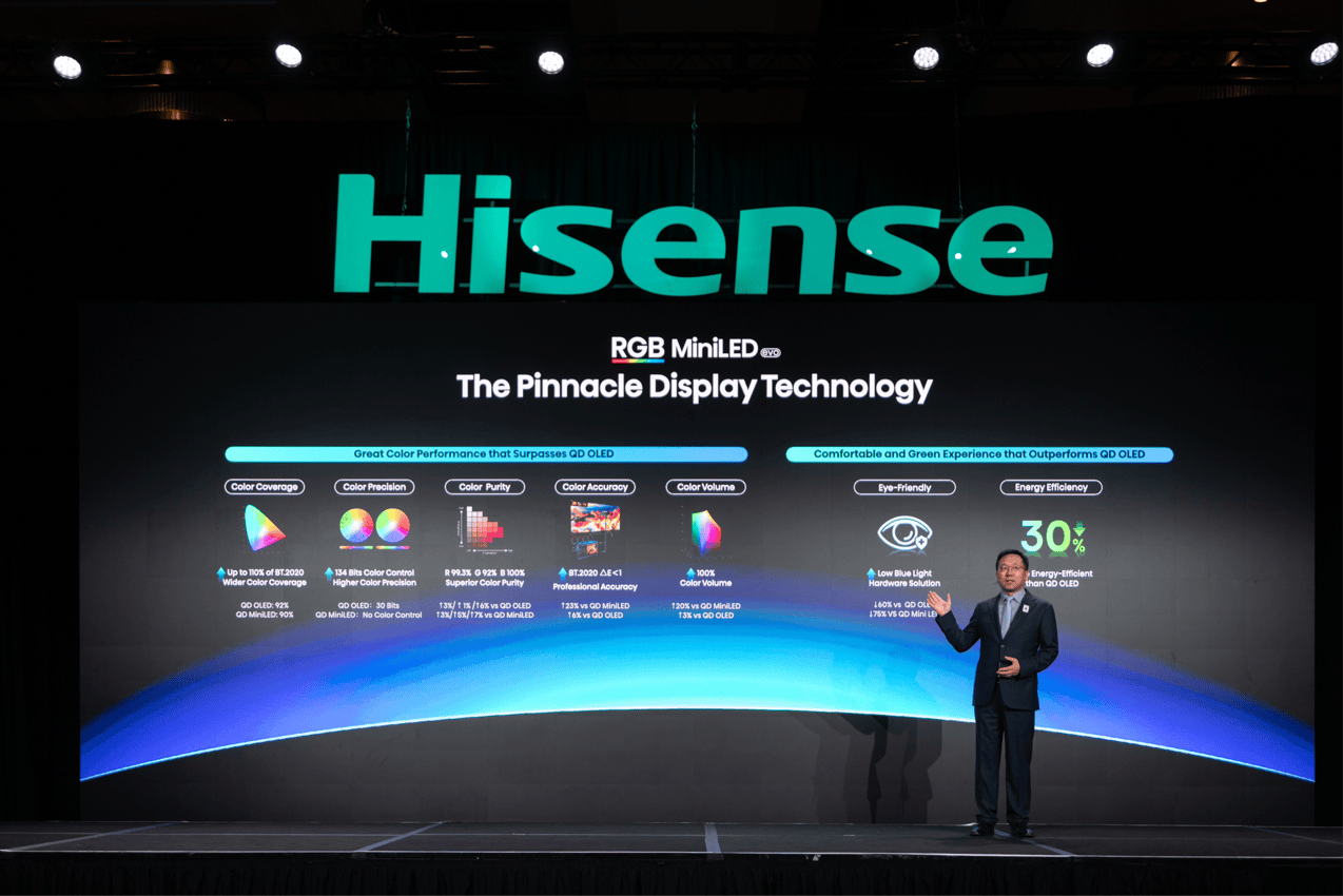 值得一提的是,光源与芯片的协同进化让产品在体验与环保上实现双赢:有害蓝光较 QD-OLED 降低 60%•,较传统 QD-Mini LED 降低 75%,能耗同步降低 30%◆▪,成为兼具极致画质、护眼属性与节能优势的高端显示标杆。