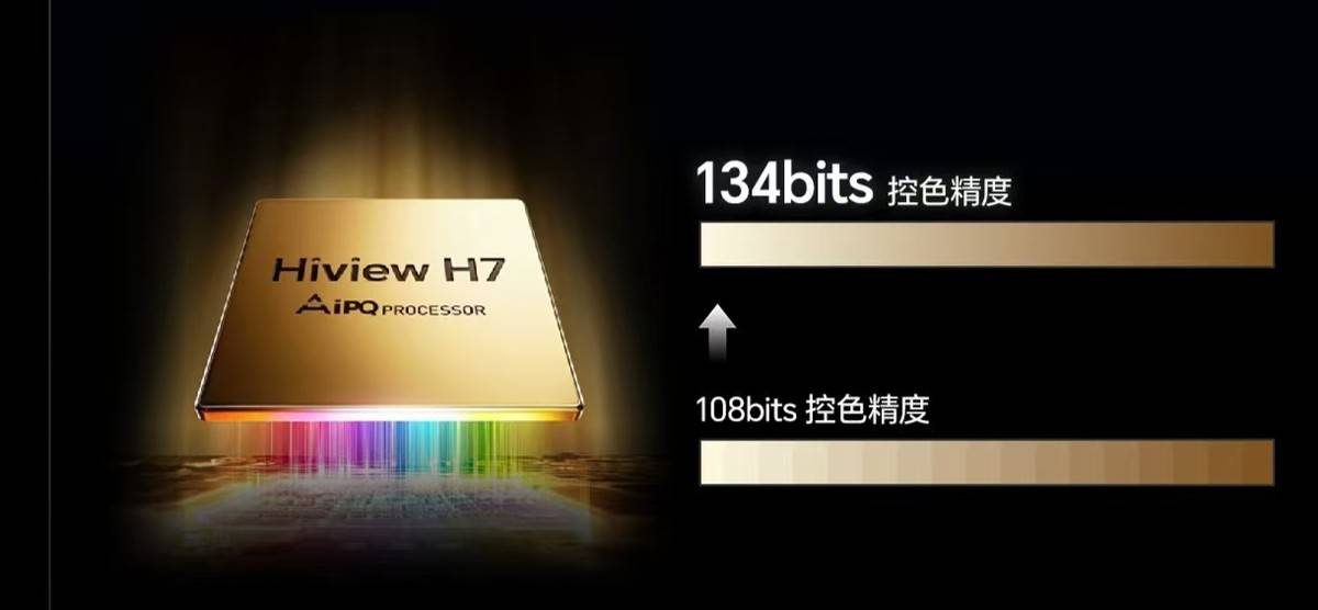 其次,光色同控芯片的升级则为画质提升提供了核心算力支撑。海信自研的信芯AI画质芯片H7,实现134bits超高控色精度,通过先进的混光运算算法,可对每一颗Mini LED芯片进行独立精准控制,使画面的明暗层次、色彩渐变如自然光影般流畅细腻。无论是夕阳余晖的金边质感,还是夜景画面的暗场发丝纹理,都能纤毫毕现地呈现=▲。