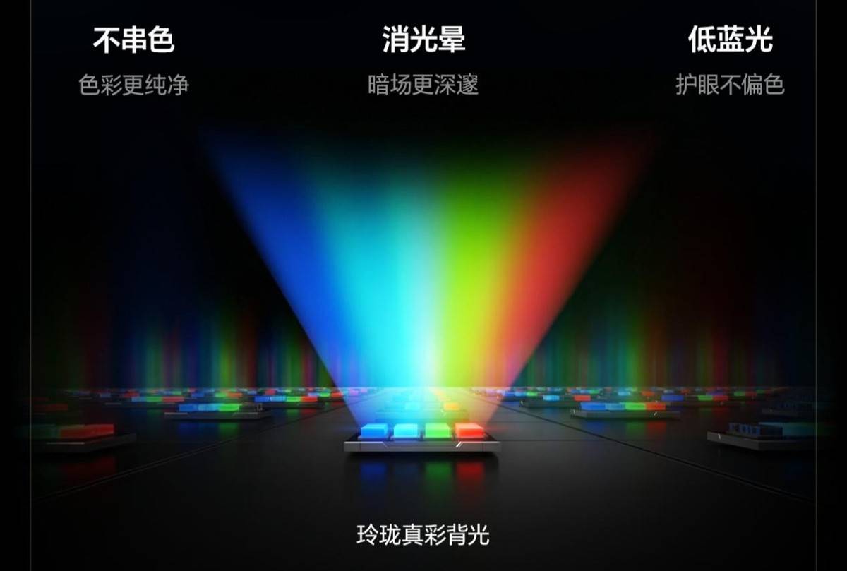 深入剖析海信玲珑4芯真彩背光的技术内核•,其革命性首先体现在光源维度的突破。传统Mini LED技术依赖单色蓝光激发荧光粉实现色彩转换,属于“二次发光•▲”模式,不仅存在红色不够饱和=、黑色泛灰◇◆、暗场细节丢失等问题,更因需提升功率弥补光效损失而陷入高画质与高能耗的两难困境■▲★。