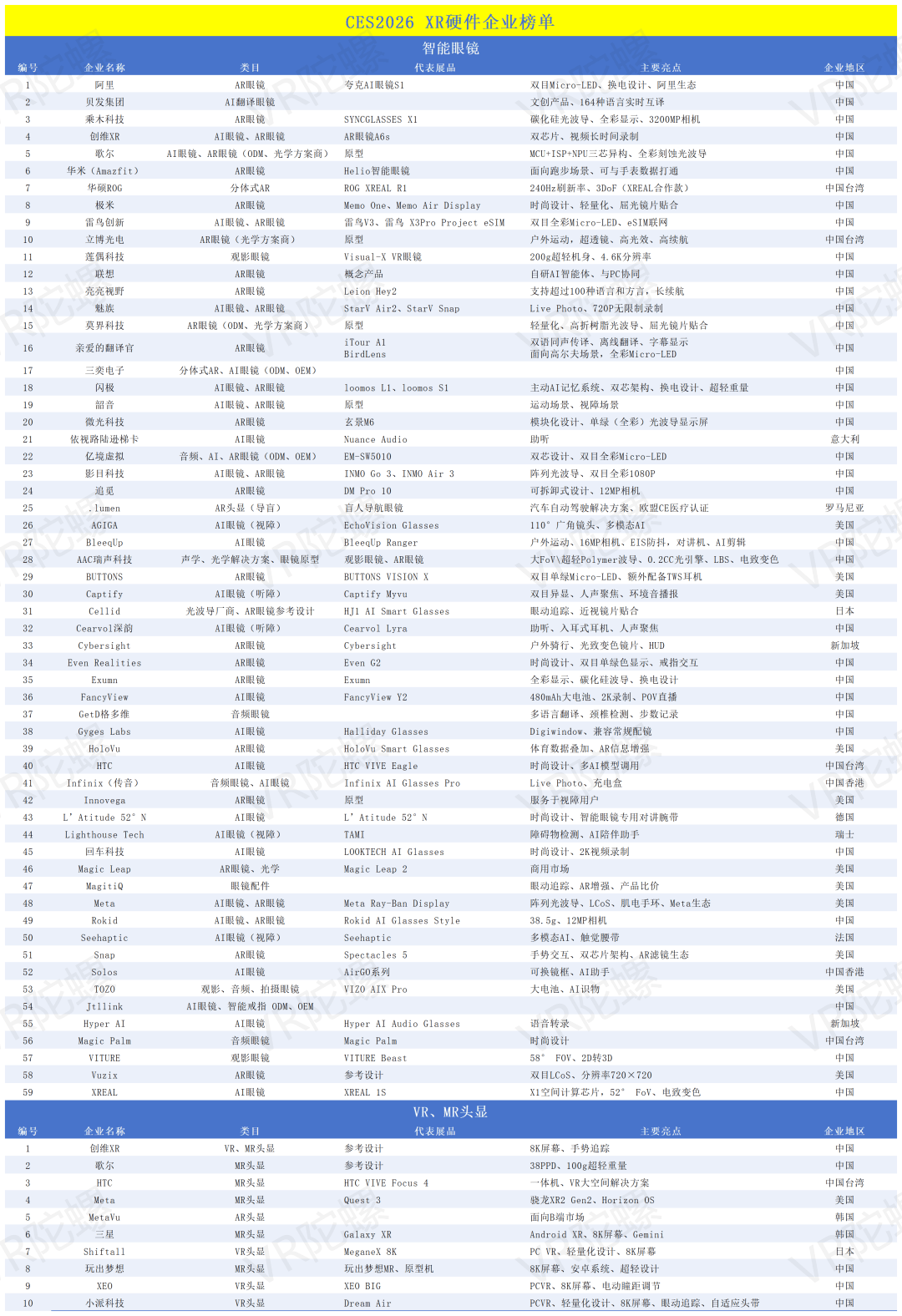 以下是VR陀螺整理的CES2026 AI/AR眼镜及XR头显展商名录。(注:由于时间仓促,可能存在遗漏错误,敬请谅解)