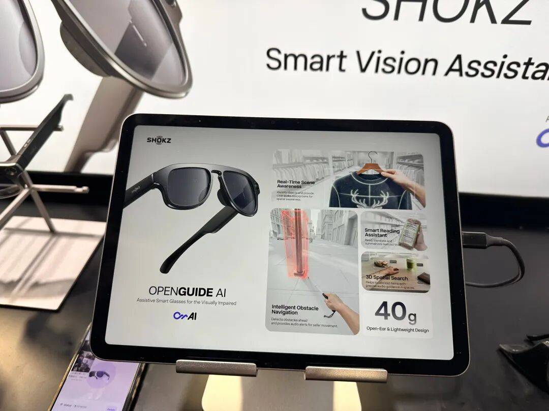 2、视障眼镜。眼镜配备开放式音频以及单摄像头…,重量只有40g。眼镜内置的AI助手可用于文本阅读-★、三维空间搜索、智能避障等,据悉该产品由韶音与联汇科技联合开发而来。
