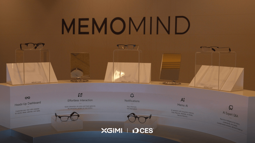 极米是今年入局AI眼镜赛道的新玩家,企业在CES期间公布了全新AI硬件子品牌MemoMind,并发布了两款AI眼镜-☆:Memo One和Memo Air Display。