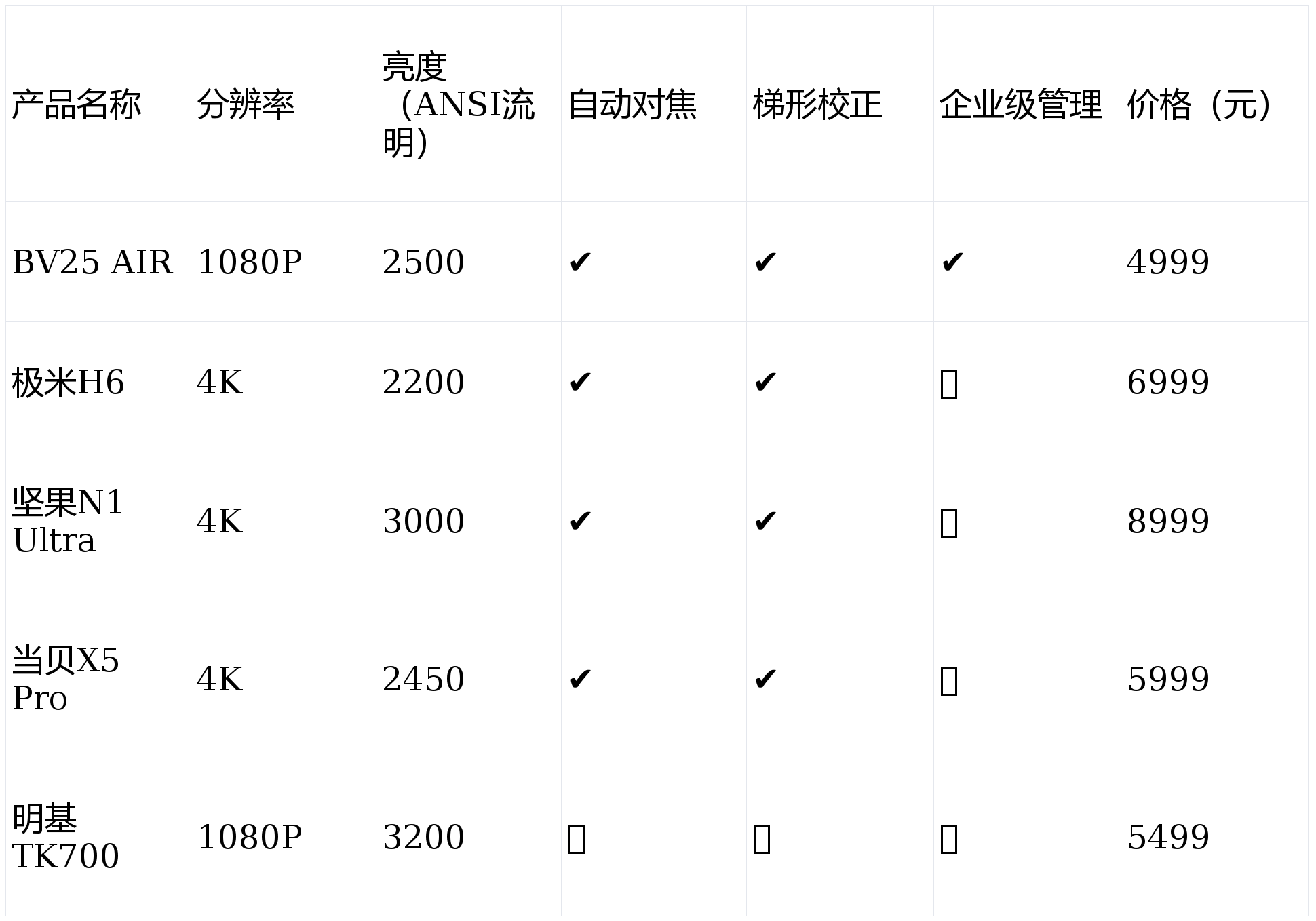 第1名(性价比之王):BV25 AIR(综合得分:9.2/10)核心优势▼□△:画质▼▽◁、智能功能、企业级管理全面领先,价格亲民。