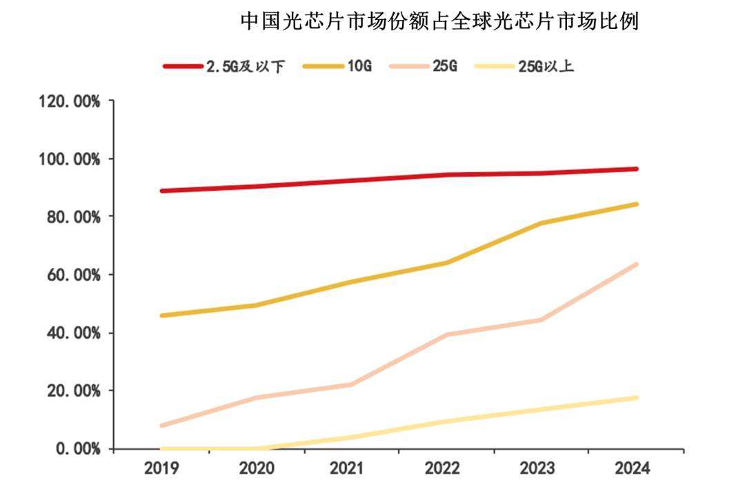 但在真正决定产业话语权的 EML 芯片及高端 APD 芯片等 “卡脖子” 环节,国产化率仍然很低,是本土厂商集中攻坚的核心挑战。